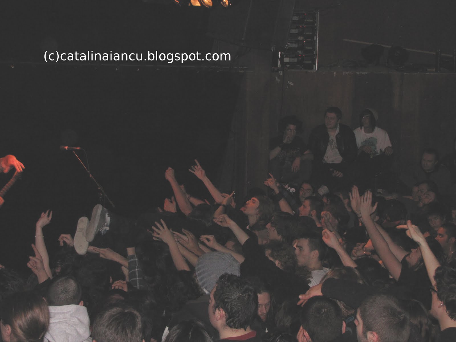 În timp ce artiştii cântau cu motoarele turate la maxim, pe scenă se formase coadă la stage diving. Spectatorii săreau unul după altul ca de pe o trambulină; chiar şi unul dintre membrii trupei anterioare s-a aruncat în public cu tot cu bere.